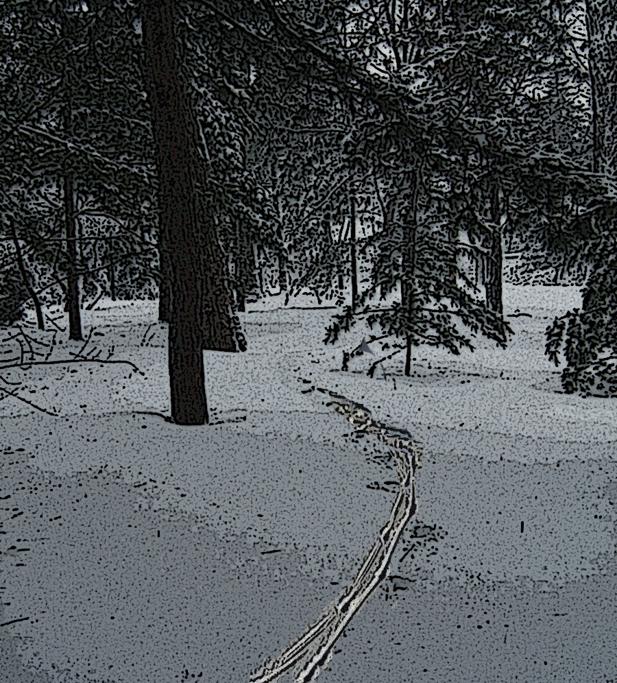 I pointed to a path in the crusty snow. There are tracks down there, Mr. Jenkins, I said, they must have been made by Evans.