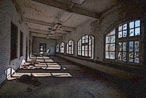 I noticed a figure standing at the far end of the room, staring out the windows at the cold and forbidding woodland behind the hospital; as I approached, I realized that it was Nurse Wallace, so absorbed in her own reverie that she was unaware of her surroundings and, apparently, of my presence. After some moments of standing adjacent and observing her, she started.