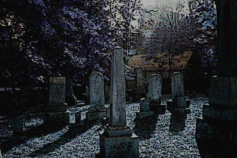 The three musketeers split up about 9:30—after a record candy haul, I might add—and Ralph and Sam promised to rendezvous at Saint James Cemetery no later than 11:45. At home, everyone had all but called-it-a-day. I padded up the hall to my parent’s room, tapped lightly on the closed door and said goodnight. The soft drone of their dresser-top TV was the only reply. I knew they were down for the count, and that cleared the way for my sneak-out, about two hours later.